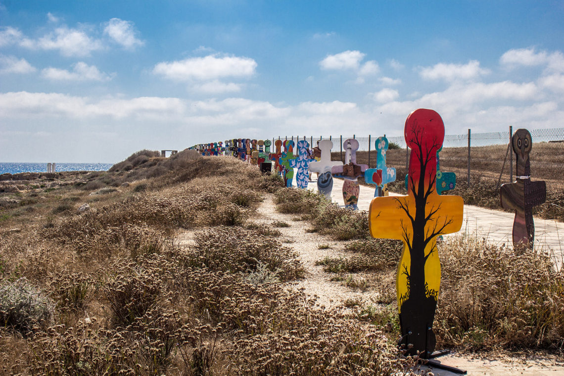 Η υπαίθρια εγκατάσταση «Σταυρόσχημα Eιδώλια» παρουσιάζεται από τις 16 Ιουνίου 2017 μέχρι τις αρχές Σεπτεμβρίου, περιμετρικά του Aρχαιολογικού Πάρκου-κατά μήκος του πεζοδρόμου, πίσω από το Μεσαιωνικό Κάστρο της Κάτω Πάφου.
