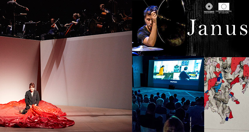 Janus is a musical composition for violin and cello accompanied by animation screenings and video art, in an on-stage art installation. The project studies the Khan, as an allegory for the political and social reality that once made the coexistence between the Turkish Cypriot and Greek Cypriot communities possible. This audiovisual presentation studies, on various levels, the Khan’s (as a symbol) transition from a meeting point to a deserted site and then explores its re-launch as a meeting space and place of coexistence.
