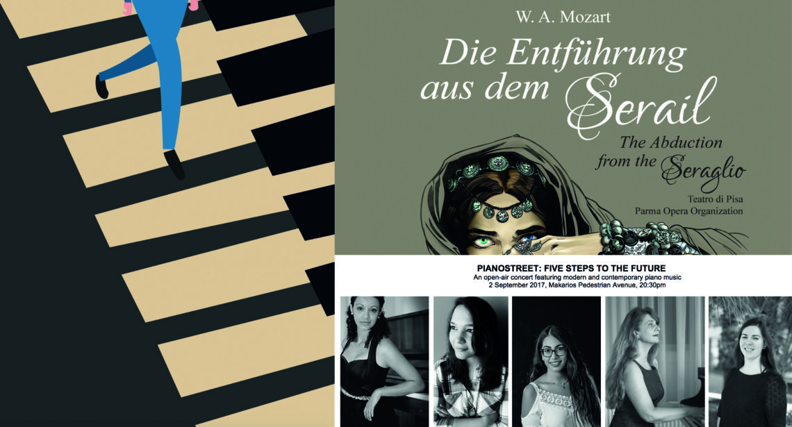 The pattern of the project “2017 Minutes of Music!- Five Pianos, Five Days, Five Places” is repeated in a different version, with the pianos placed along Makarios Avenue. The concept of the event is that the audience moves from one piano to the next, in an open air space. Five talented pianists from Pafos and other townsof Cyprus, namely Marianna Georgiou, Pantelitsa Socratous, Galina Dimova, Maria Avraam and Cleo Papadia, perform pieces written for solo piano in the last 50 years.